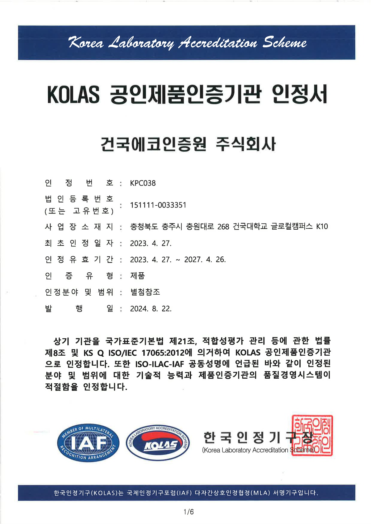 상호 : 건국에코인증원(주)│대표 : 김범석│사업자 등록번호 : 303-81-52406 [사업자정보확인]